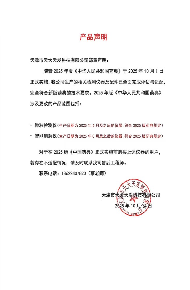 | 尊敬的各界朋友們: 歡迎您進入天津市天大天發(fā)科技有限公司的網(wǎng)站進行瀏覽,首先感謝各界朋友多年來對天大天發(fā)藥品檢測儀器和分析儀器的關(guān)心與支持! 天津市天大天發(fā)科技有限公司是通過ISO9001質(zhì)量管理體系認證、ISO14001環(huán)境管理體系的認證的高新技術(shù)企業(yè),是專業(yè)的藥檢儀器和分析儀器的制造廠商。 我們的產(chǎn)品包括藥品溶出儀系列、微粒檢測儀系列、內(nèi)毒素檢查儀系列等40余種產(chǎn)品,主要產(chǎn)品覆蓋了全國所有省區(qū),部分產(chǎn)品已進入海外市場。公司在藥檢領(lǐng)域樹立了良好的品牌形象,贏得了廣大用戶的贊譽。 公司將更好地適應(yīng)瞬息萬變的市場,增強企業(yè)的核心競爭力。抓住全球經(jīng)濟飛速發(fā)展的歷史性機遇,以創(chuàng)新精神進行新的創(chuàng)業(yè)。以高起點、高速度、高效率創(chuàng)造出中國藥品檢測儀器和分析儀器領(lǐng)域中的品牌形象,立足中國,走向國際。 我們熱切希望您成為天大天發(fā)科技有限公司的合作伙伴! |